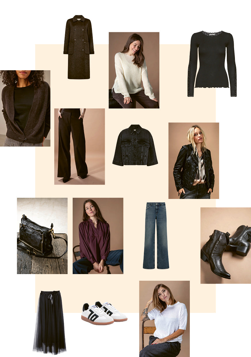 Fehlen dir bestimmte Basics? Dann investiere bewusst in hochwertige Stücke – etwa eine perfekt sitzende Jeans, einen Mantel aus Wollmix oder eine Bluse in neutraler Farbe.