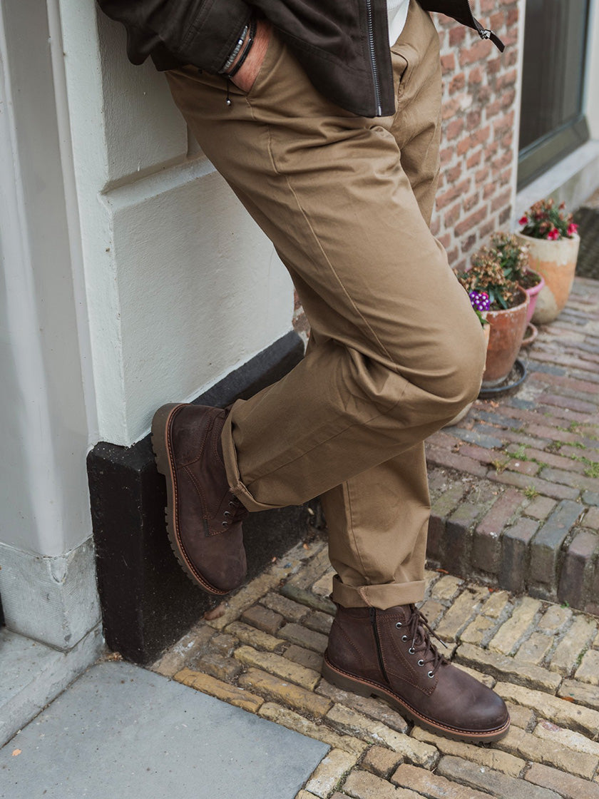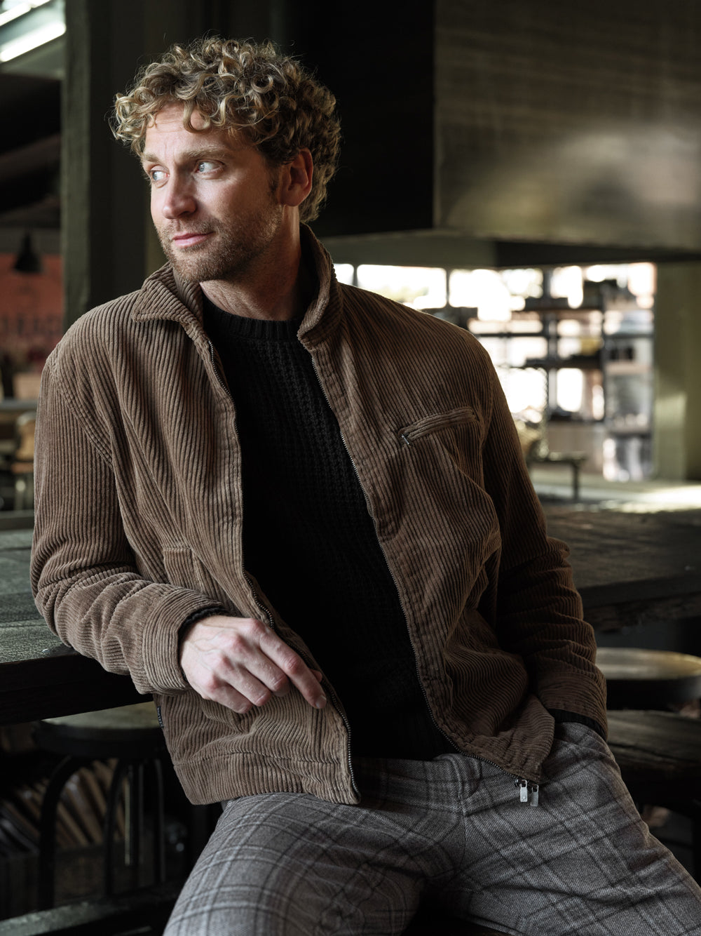 Cordjacke in warmem Braun, dunkler Strick und karierte Hose ergeben einen ruhigen und angenehmen Look. Die gewählten Materialien bringen Struktur und Wärme, ohne schwer zu wirken. Ideal für einen entspannten Dezemberabend.
