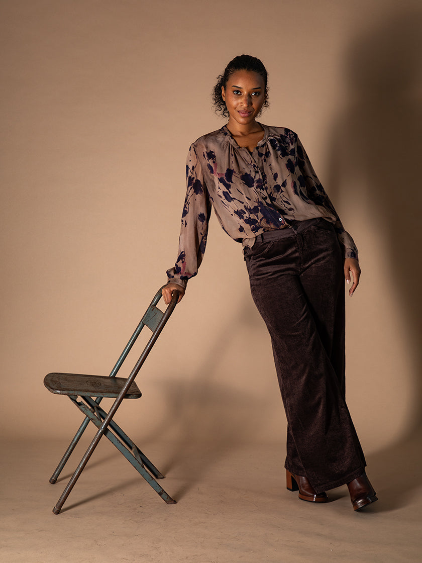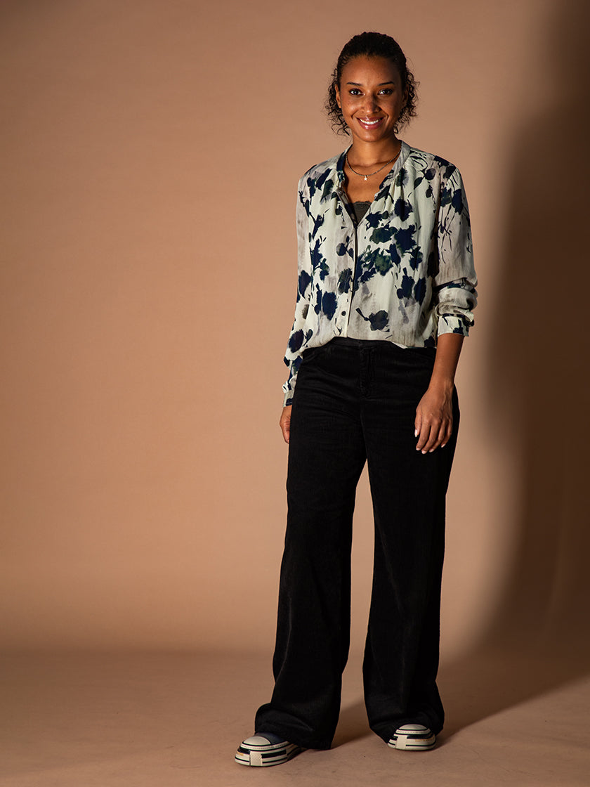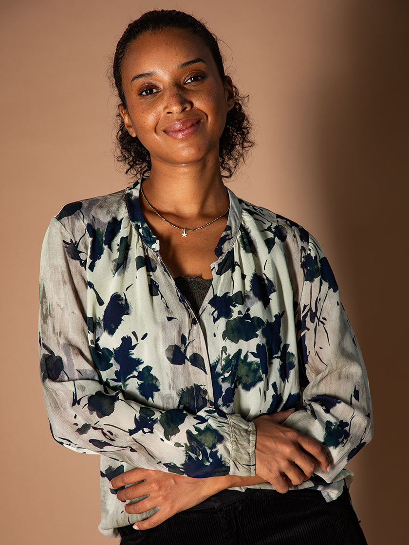 Leichte Viskosebluse von Transit mit femininer Fleur-Print. Das fliessende Material sorgt für einen angenehmen Tragekomfort. Ideal für besondere Anlässe.