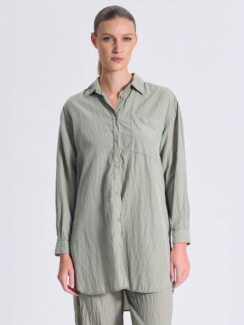 Elegante Bluse aus hochwertigem Seidenmix mit grosszügigem Schnitt. Das Modell überzeugt durch klassische Details wie den strukturierten Blusenkragen und die zentrale Knopfleiste. Die aufgesetzte Tasche auf der linken Seite bietet praktischen Stauraum. Die asymmetrische Saumlinie – vorne kürzer, seitlich geschlitzt – verleiht dem Design moderne Bewegungsfreiheit. Die Rückseite überzeugt mit einer raffinierten Passe und feinen Steppdetails an den Ärmeln sowie einer eleganten Falte in der Mittellinie. Eine zeitlose Bluse, die Komfort und Stil vereint.