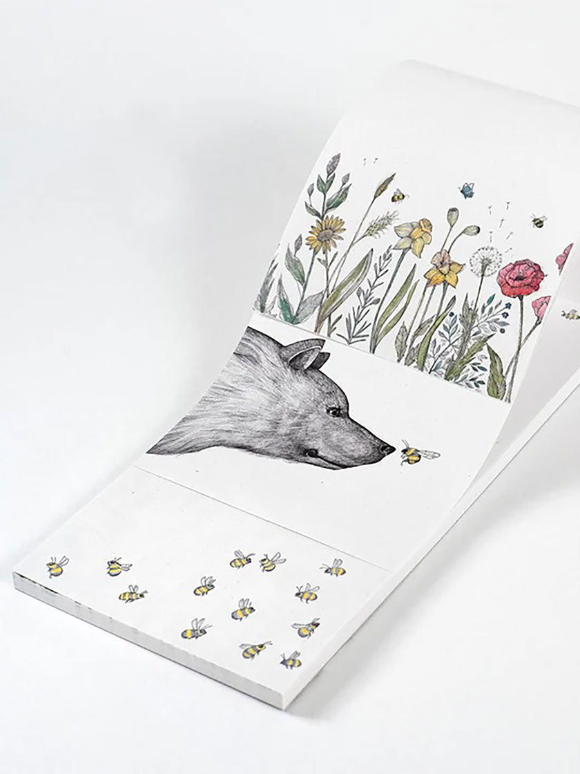 Dein neuer Lieblingsnotizblock: 45 Blatt aus 100% Recyclingpapier mit dreiwechselnden Bienen- und Blümchen-Motiven – frei von Linien für deineKreativität. Nachhaltig, charmant und bereit, deine Ideen festzuhalten.