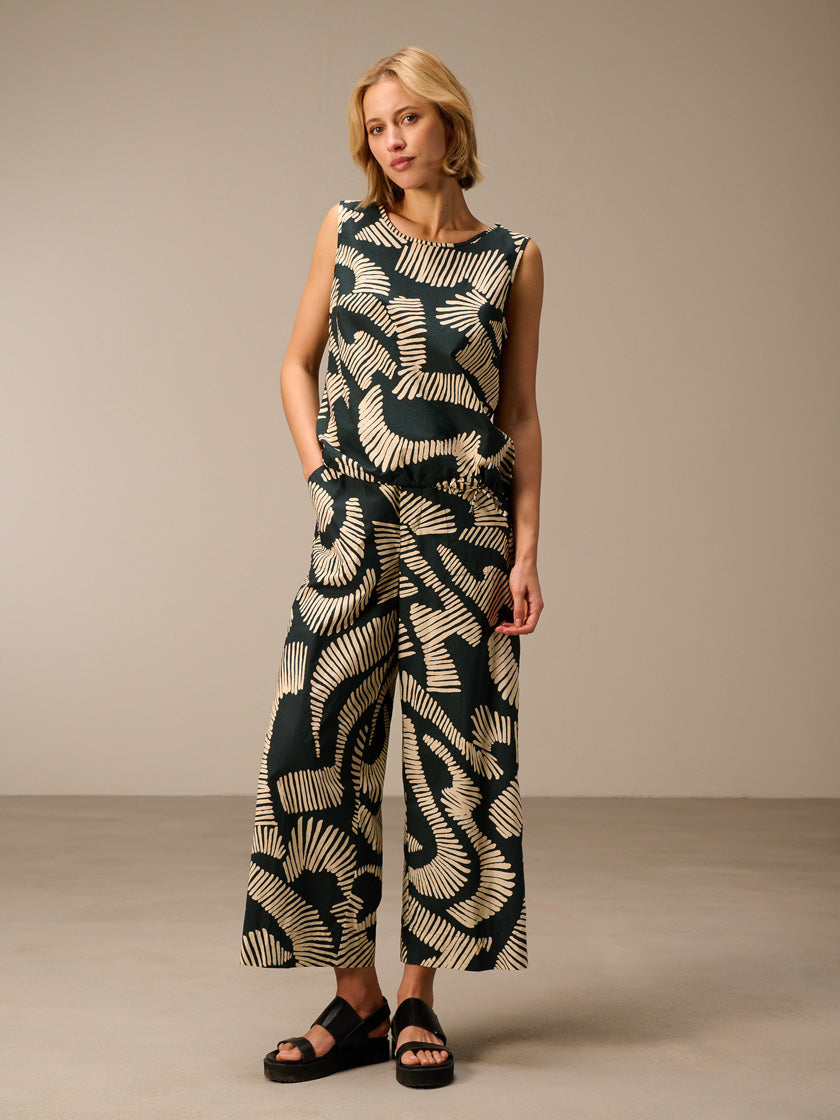 Elegante Wide-Leg-Hose von NILE aus zertifizierter Bio-Baumwolle. Das durchdachte Muster verleiht dieser Hose einen modernen, vielseitigen Look, der sich mühelos zu verschiedenen Outfits kombinieren lässt. Der lockere Schnitt bietet maximalen Komfort für den Alltag, während die hochwertige Verarbeitung Langlebigkeit garantiert. Nachhaltig, stilvoll und zeitlos – die perfekte Wahl für bewusste Mode-Liebhaber.