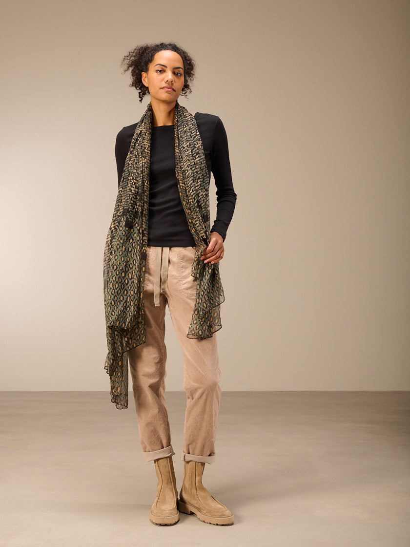 Der Schal von NILE aus weicher Seide fühlt sich herrlich angenehm auf deiner Hautan und verleiht jedem Look eine edle Note. Gönn dir diesen stilvollen Begleiter, derdich jederzeit warmhält und gleichzeitig elegant aussehen lässt.