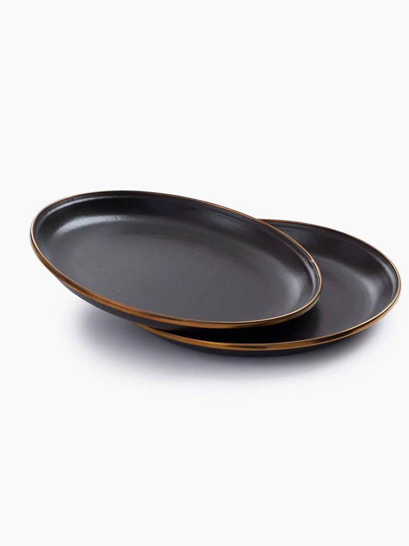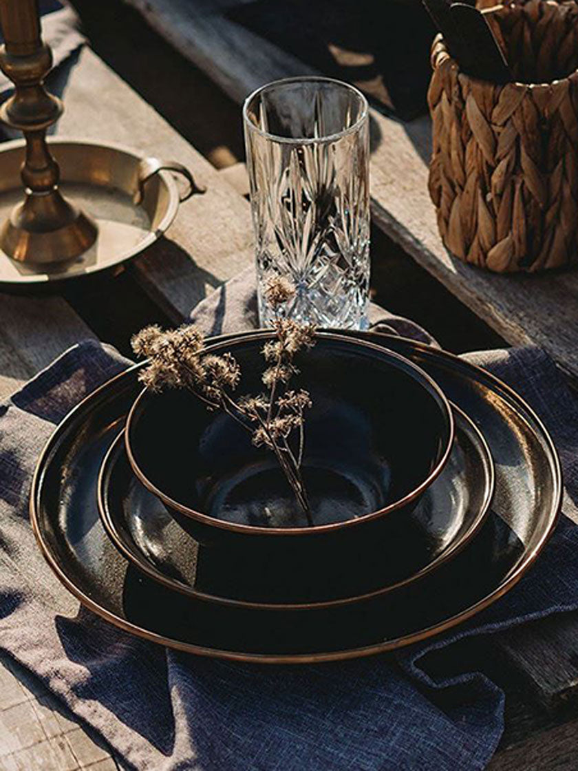 Dieses 2er-Set Salatteller besticht mit vintage-inspiriertem Design und gebranntem Edelstahlrand in bronzefarbener Patina-Optik. Der robuste Stahlkern mit gesprenkelter Emaille-Beschichtung und erhöhten Kanten macht sie zum perfekten Begleiter für deine täglichen Mahlzeiten.