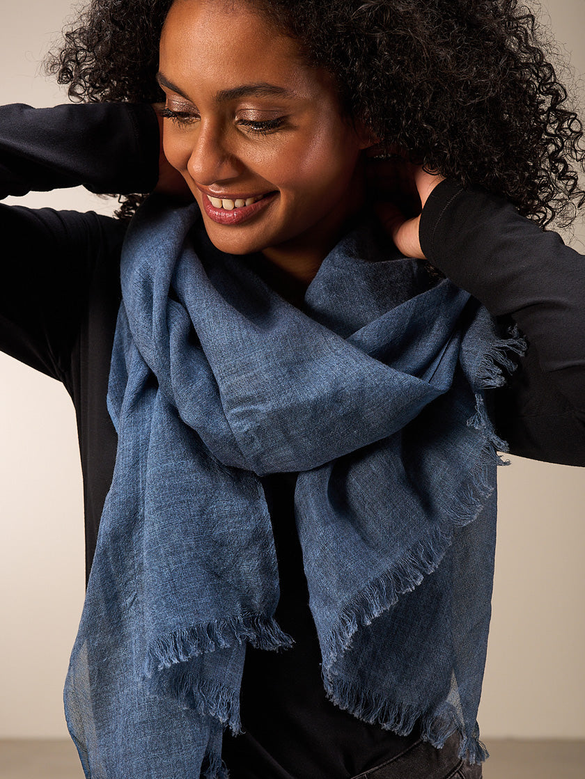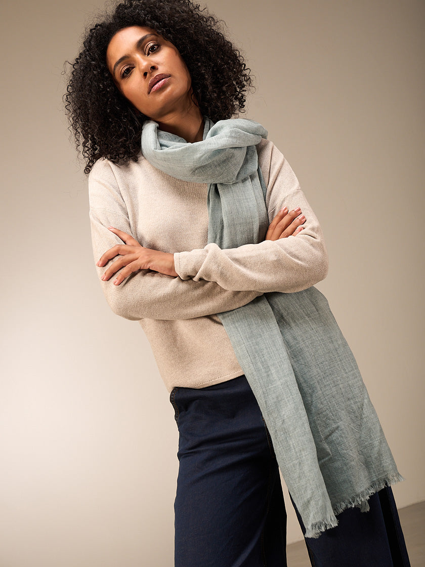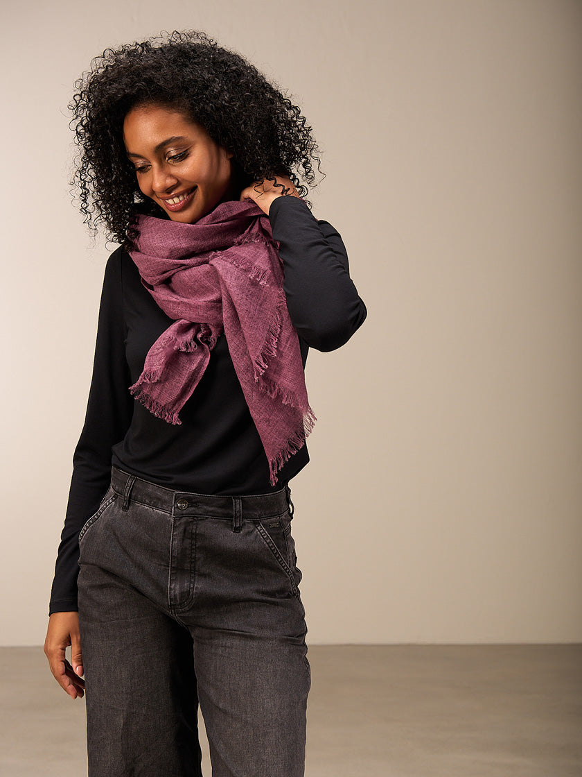 Der Schal von NILE aus 100% verantwortungsvoll gewonnener Wolle sorgt für kuschelige Wärme mit einem frechen Charme.