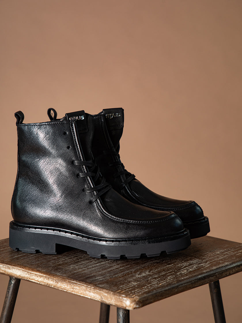 Diese Schnürstiefelette von MJUS vereint lässiges Design mit hochwertigem Leder und einer markanten Profilsohle.
