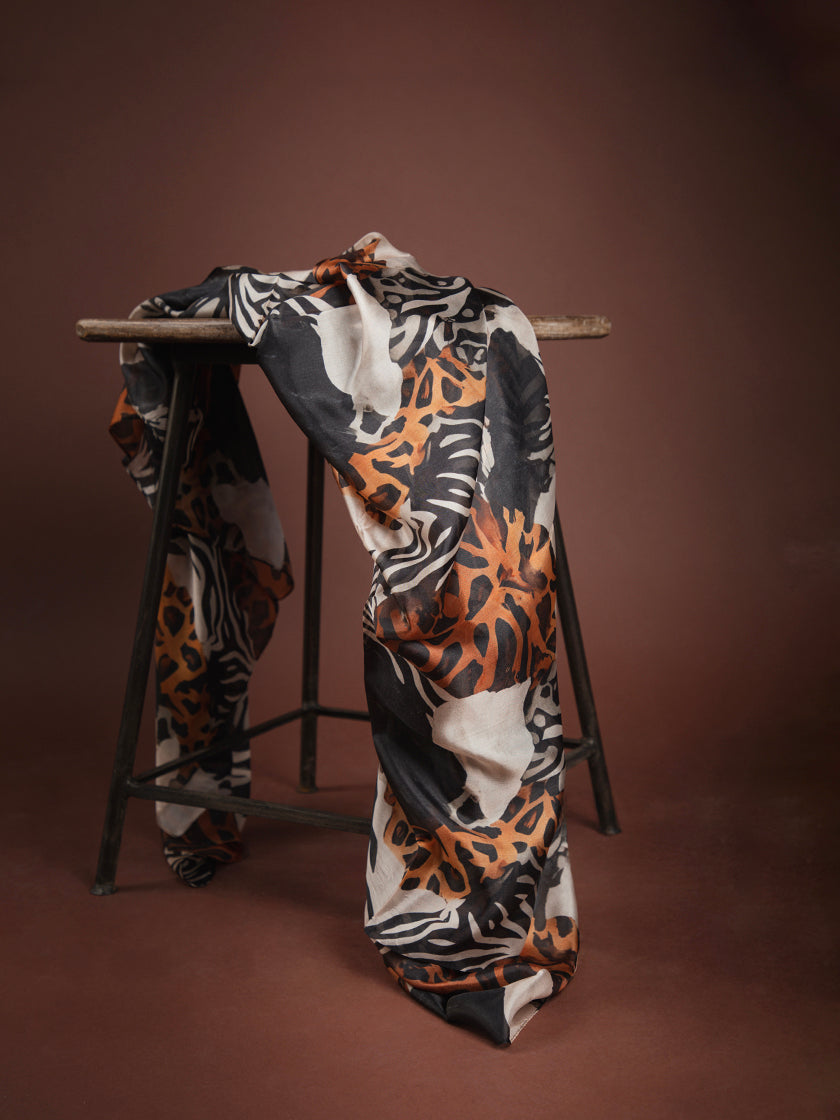 Dieser wunderschöne Seidenschal mit Zoo-Motiv verleiht deinem Outfit