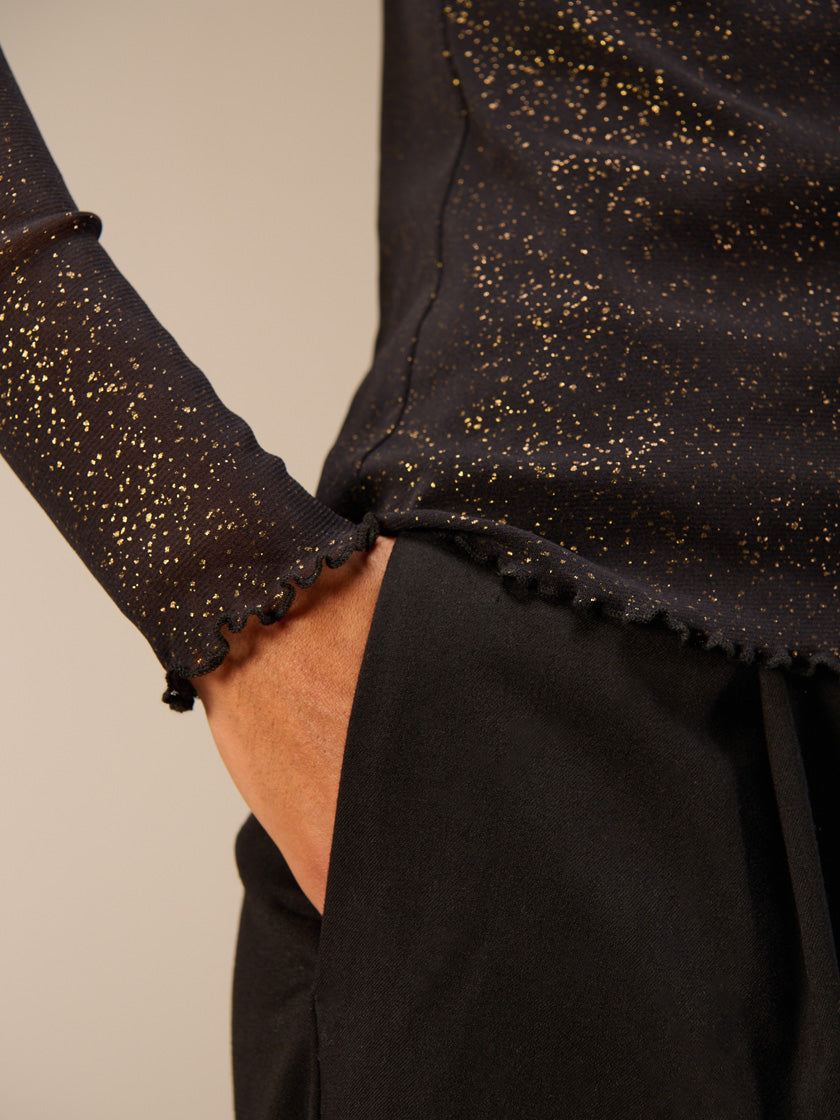 Auf links waschen. Mit ähnlichen Farben waschen. Wäschenetz verwenden. Feinwaschmittel verwenden. Keinen Weichspüler hinzufügen.