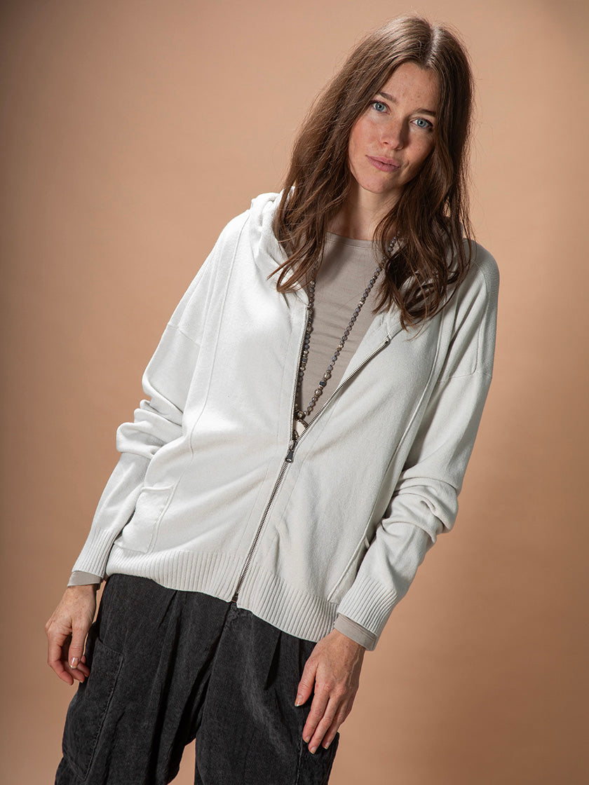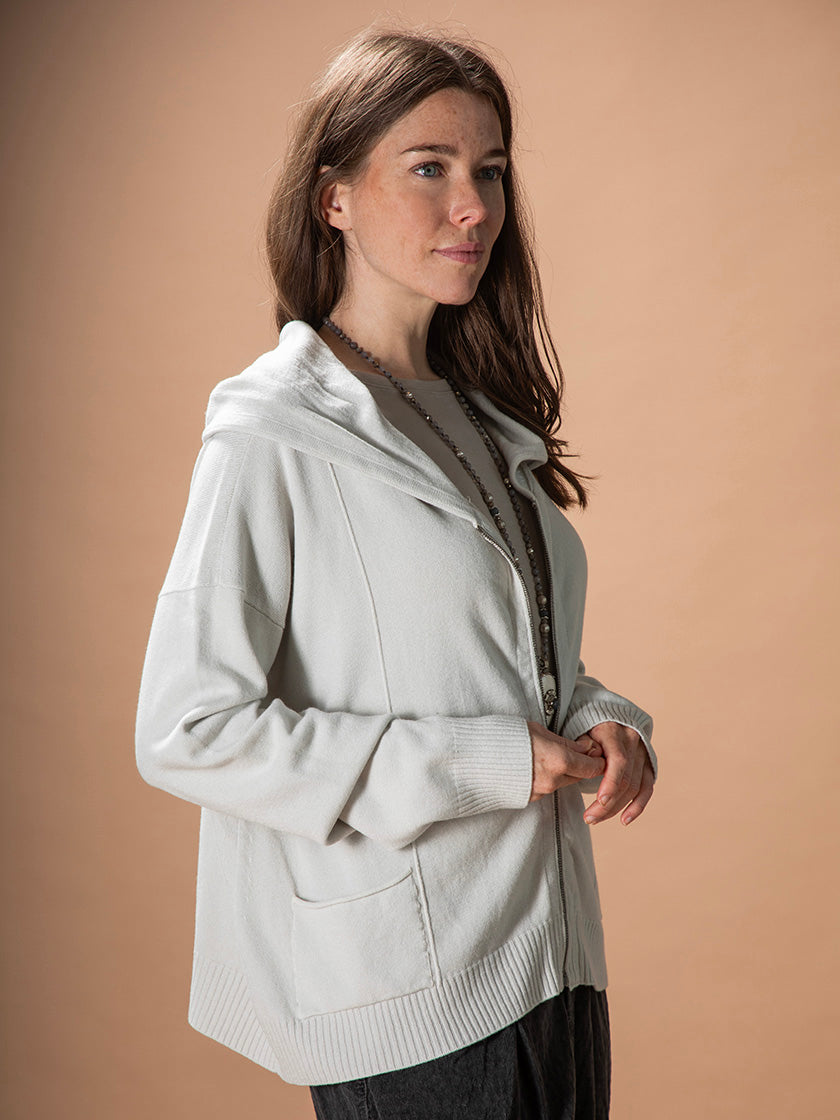 Eleganter Strickcardigan von TRANSIT in hochwertiger Verarbeitung. Das Modell überzeugt durch seine weiche Haptik, zeitloses Design und lässigen Schnitt. Mit praktischen Eingrifftaschen und einer Kapuze ausgestattet, eignet sich der Cardigan perfekt für entspannte Alltagslooks oder als stilvolle Ergänzung zu eleganteren Outfits.