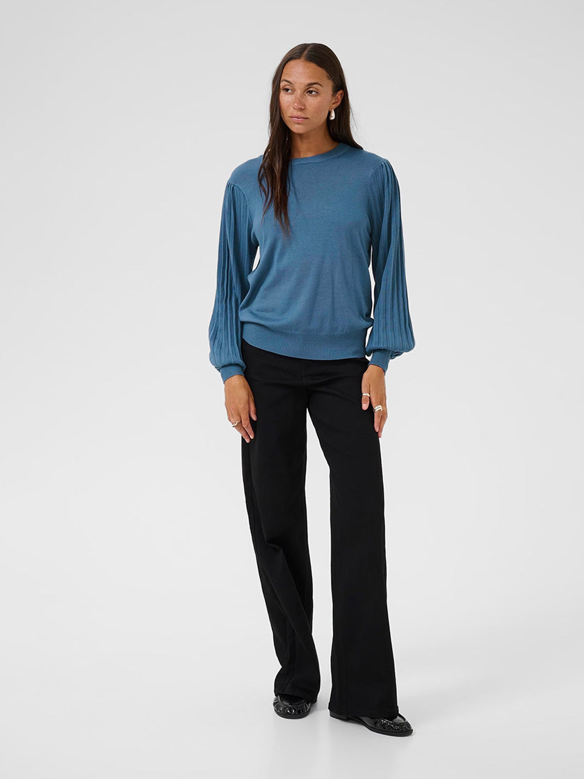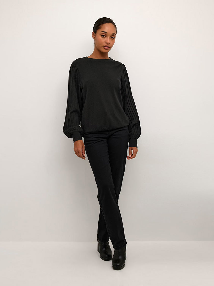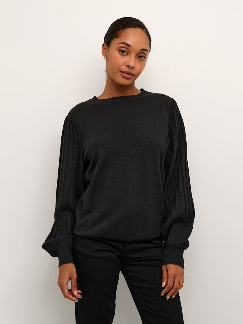 Strickpullover «Kalone» von KAFFE mit klassischem Rundhalsausschnitt und weit geschnittenen Ärmeln. Ein modernes Basic mit besonderem Detail – bequem, stilvoll und vielseitig kombinierbar.