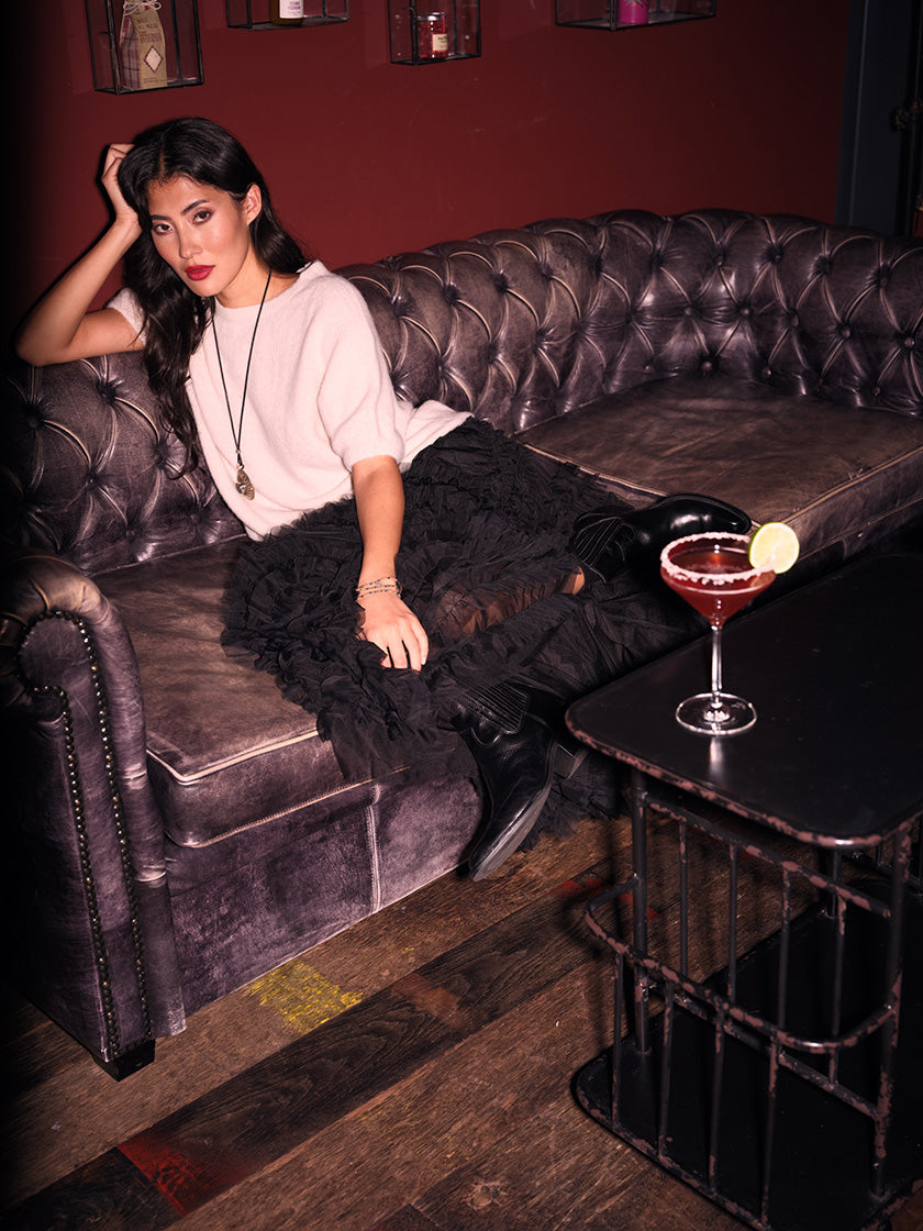 Dieser luftige Tüllrock verleiht dir einen verspielten, eleganten Look für jeden Anlass. Mit seinem fliessenden Stoff und der femininen Silhouette setzt du mühelos ein Statement.