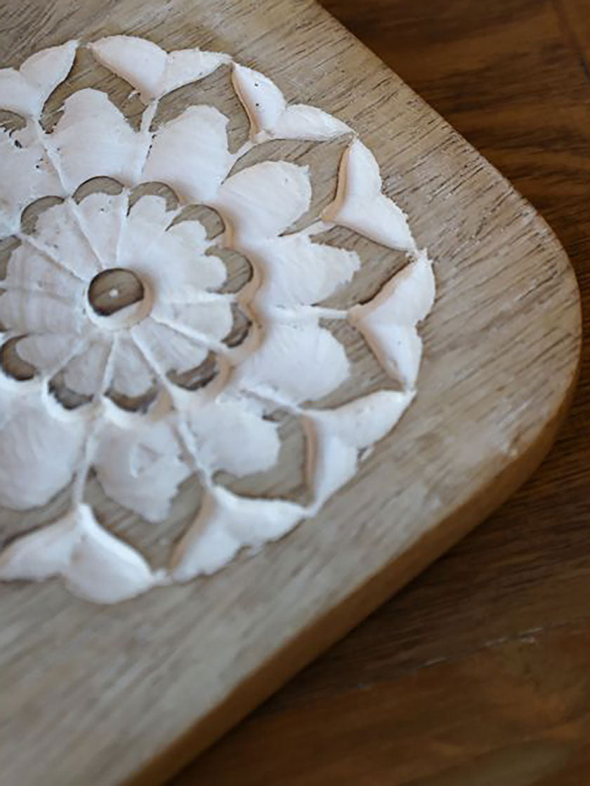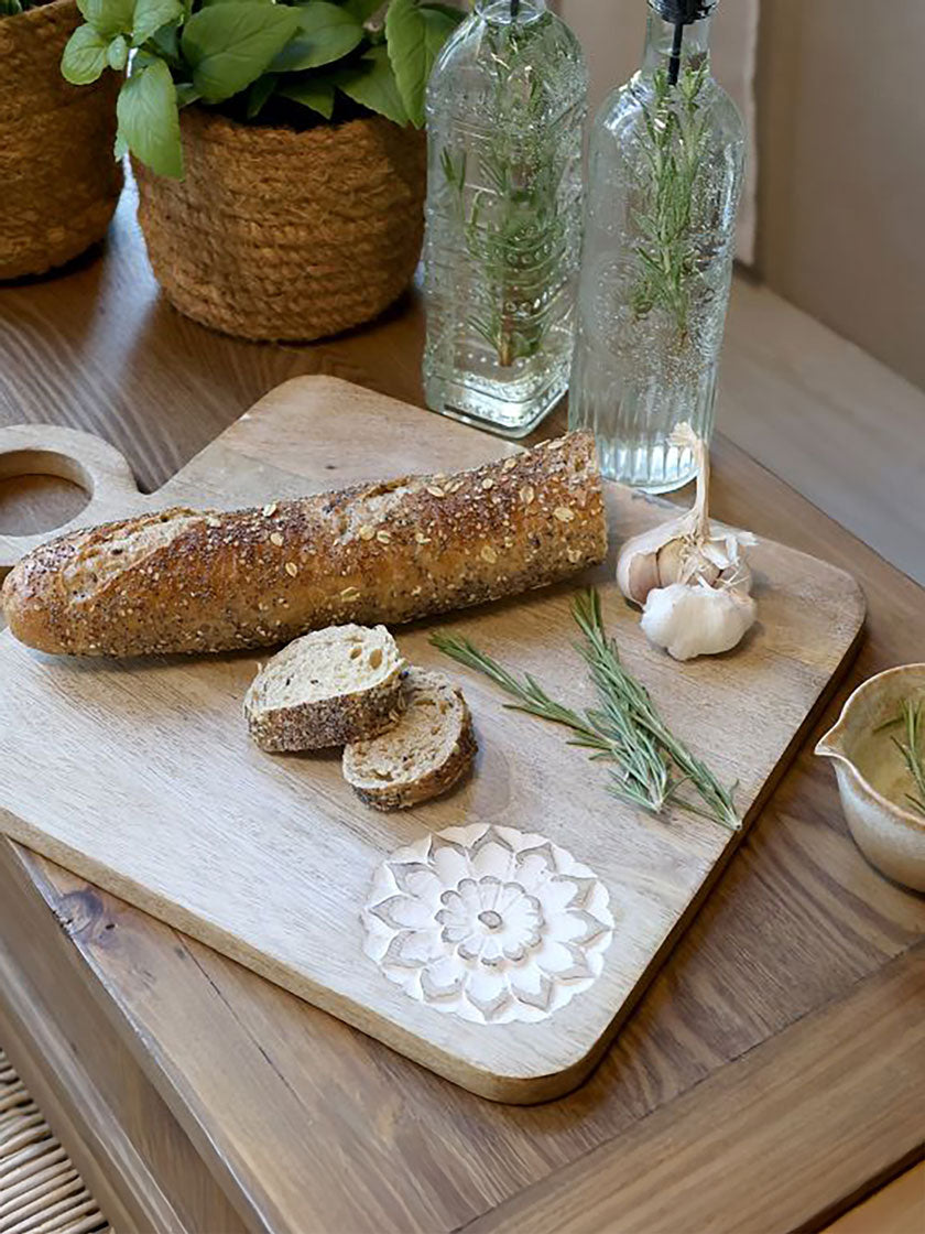 Dieses elegante Tapasbrett aus Mangoholz besticht durch seine natürliche